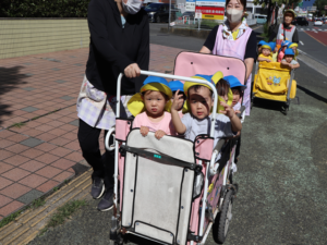 お天気が良い日は園以外での様子も楽しんで、お散歩も取り入れていきたいと思います😊