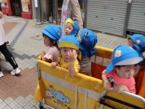 商店街の中を通りながらいろんなものに興味を示す子供たちです✨