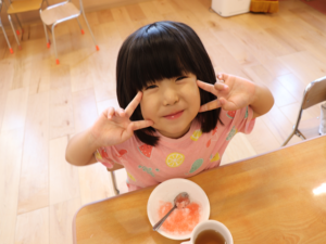 給食の先生がかき氷を削ってくれて、シロップを用意してくれました✨
