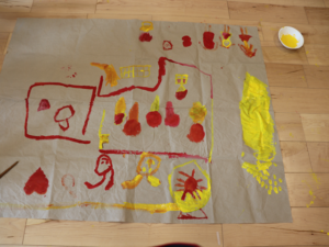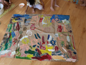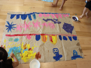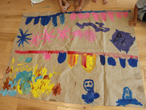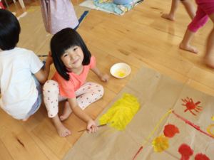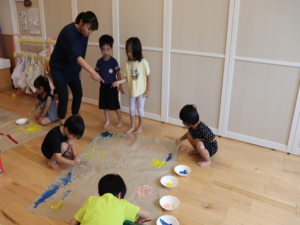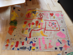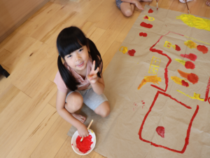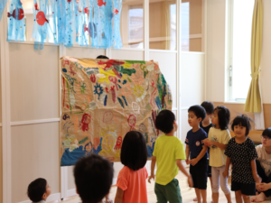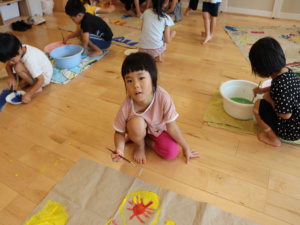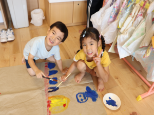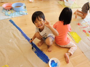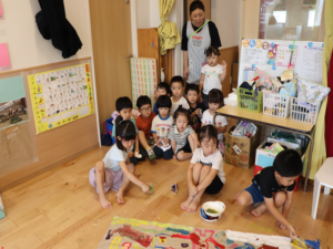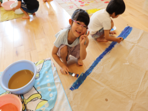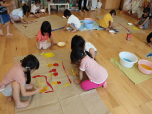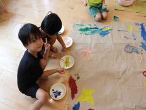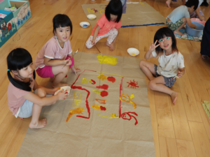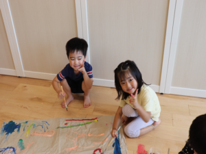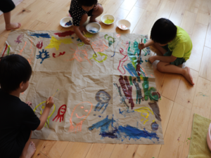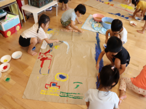 ぞう・きりん組さんは大きな模造紙にグループごとに絵を描いていきました🖌