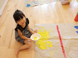 子供たちがテーマを自分たちで考えて決めて、描いていきます😊