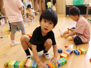 ブロックを見つけて楽しくあそぶりす組のお友だちです♥️