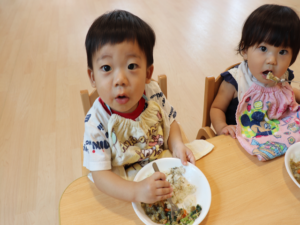 ひよこ組さんは楽しい給食タイムです🎵