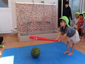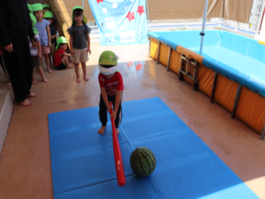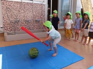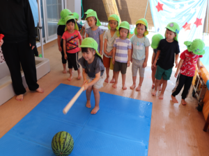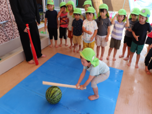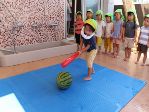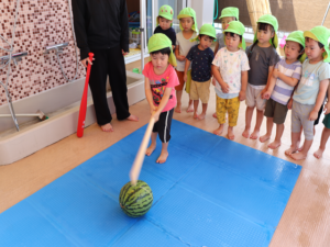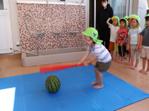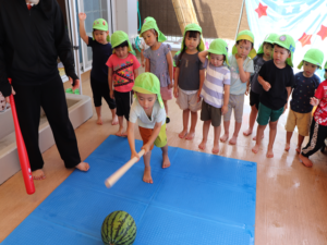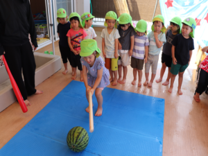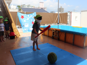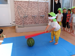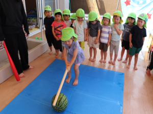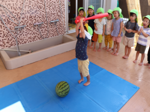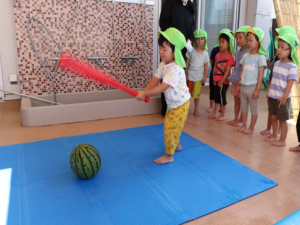 みんなで頑張ってすいかを割ろうとするぱんだ組さんです🐼