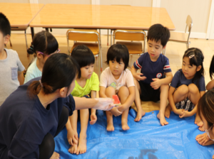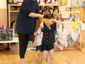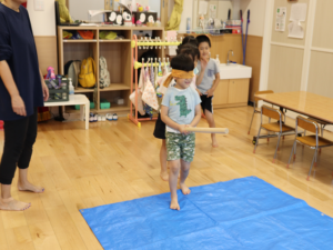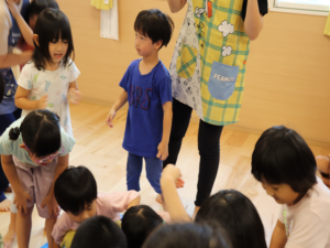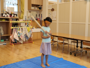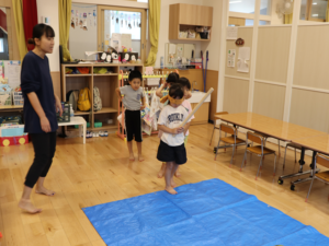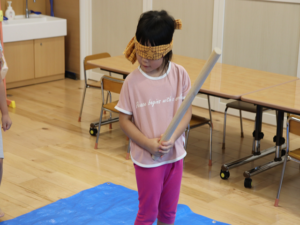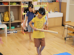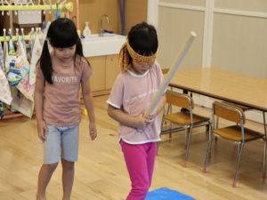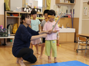 もう少し横だよ~周りのお友だちからの声に合わせて狙いを定めます😊