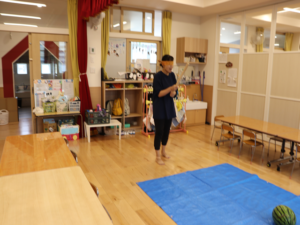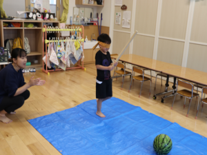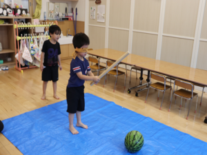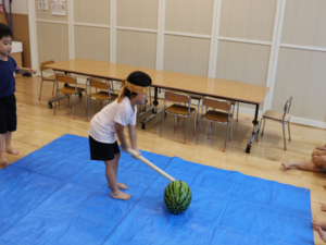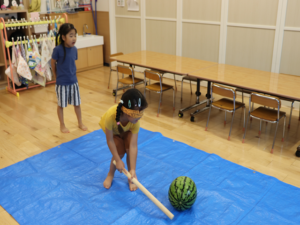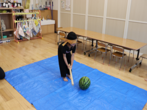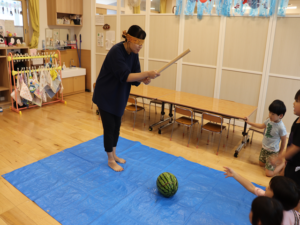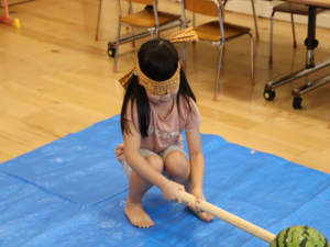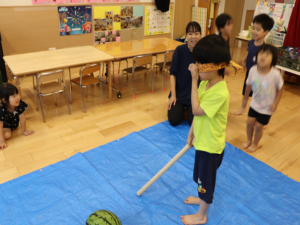 今日はぞう・きりん組さんのすいか割り🍉