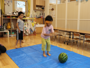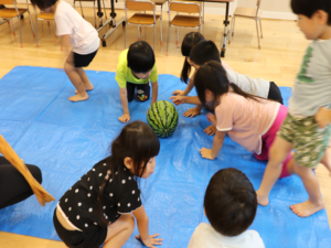 お友だちの声援に耳をかたむけながら、少しずつすいかに近づきます✨