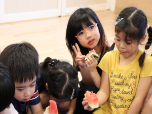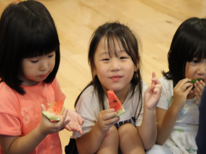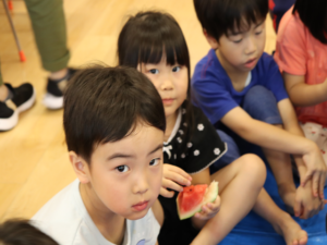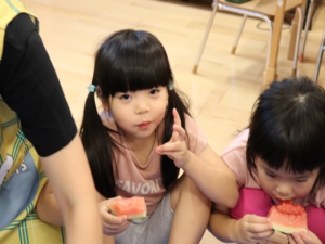 割れたすいかを先生がみんなに分けてくれました✨