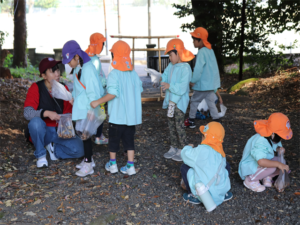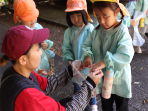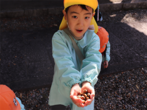 見つけたどんぐりを先生たちにも見せてくれました♥️