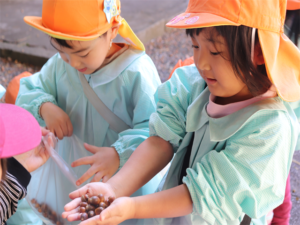 神社の中ではどんぐりや松ぼっくりなどたくさんあったよ✨