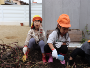 土を掘ってお芋を探していきます😊