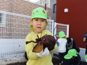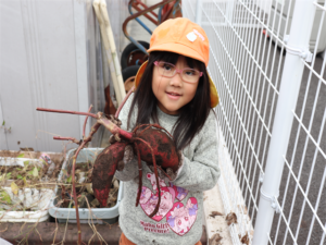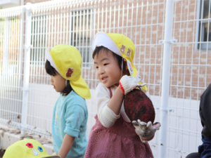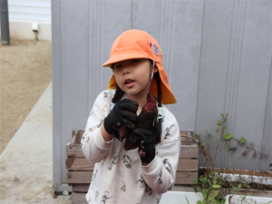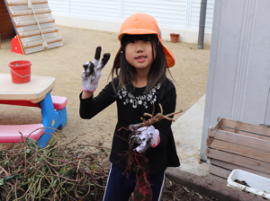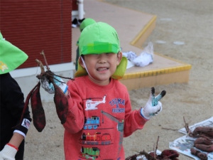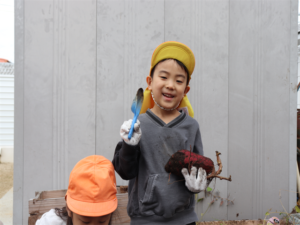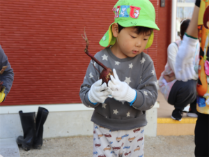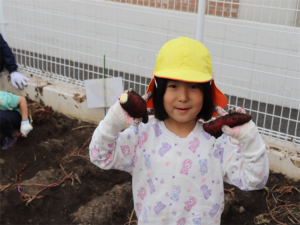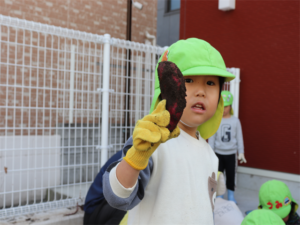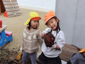 大きなお芋見つけたよ~と見せてくれるお友だちです♥️
