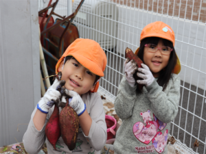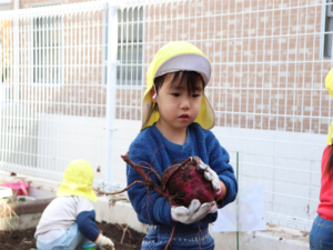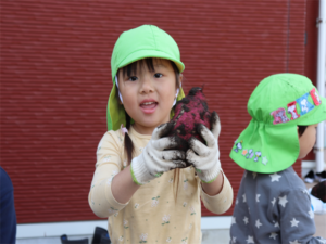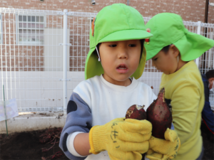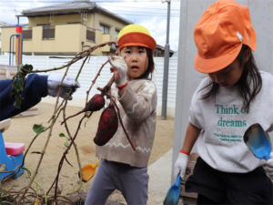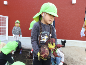 まず最初はぞう・きりん組さんです✨先生のお話を聞いて収穫しました🍠