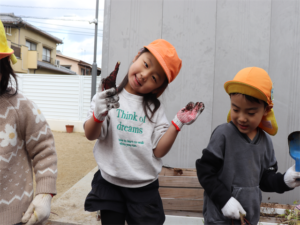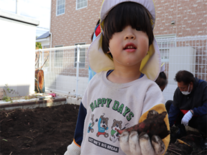 土をお友だちと協力しながら掘っていきました✨