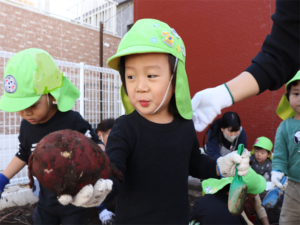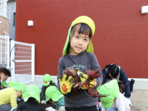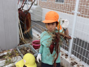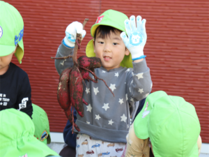 採れた~と嬉しそうなお友だち✨大きなお芋見つけたね🍠
