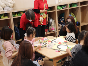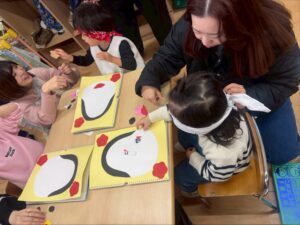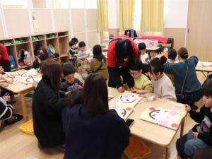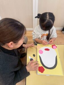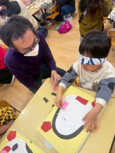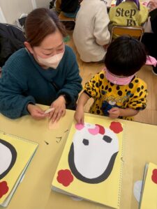 とってもかわいらしい福笑いを、保護者の皆さんと一緒に楽しむ事が出来たぱんだ組さんです✨