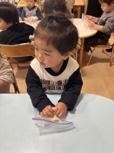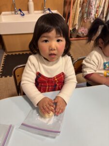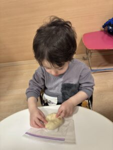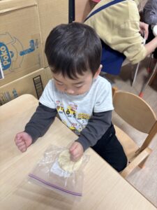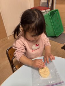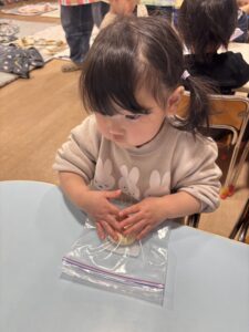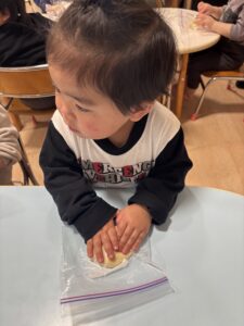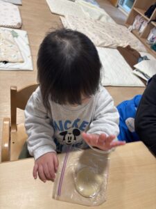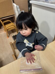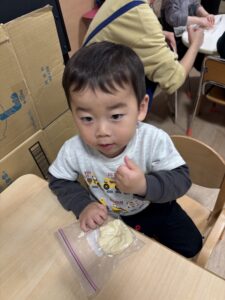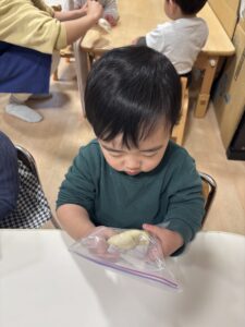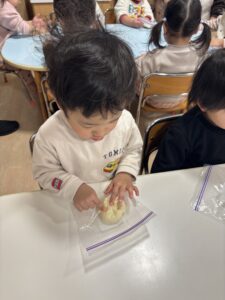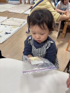 ジップロックに生地を入れて、みんなでコネコネしました🎵