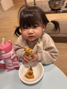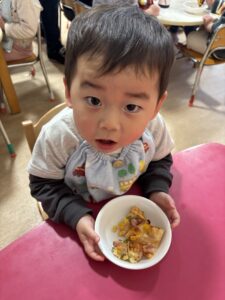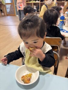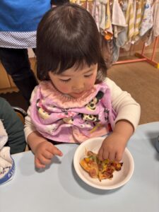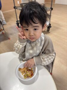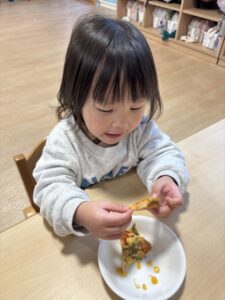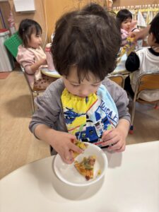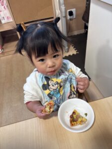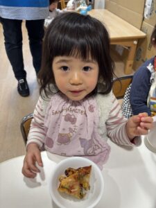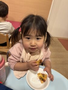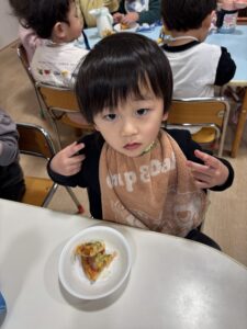 みんなおいしそうにおやつの時間にピザを食べていました🍕 みんな上手に出来て嬉しそうに食べる姿を見ることが出来ました😊 またみんなで手作りしようね🎵