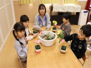 卒園前に毎年行われるフラワーアレンジメント教室🌸