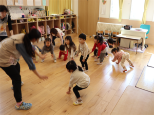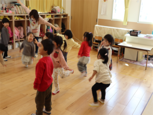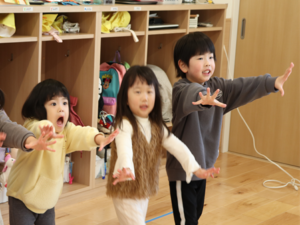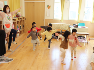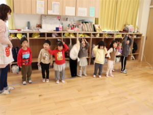 笛に合わせてポーズを作るうさぎ組さんです🐰