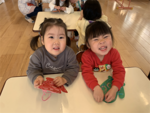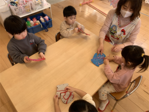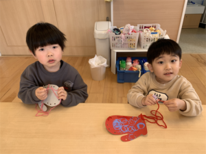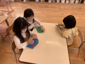 毛糸を上手に使って手袋を作っているお友だちです🧤