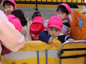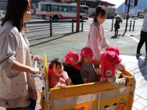 周りの風景を見ながら、先生の顔を見てにこっと笑うお友だちもいました😊