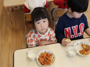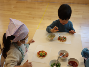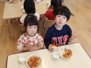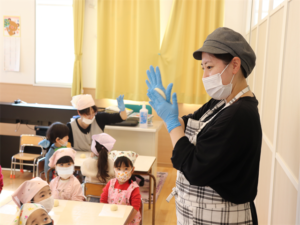 最初に給食の先生のお話をしっかり聞く子供たちです⭐