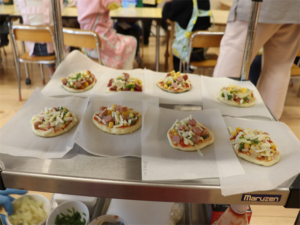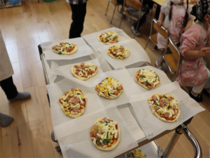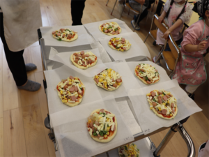 みんなが作ったピザパンを給食の先生が焼いてきてくれます✨