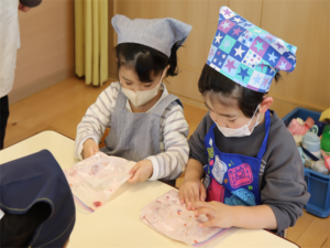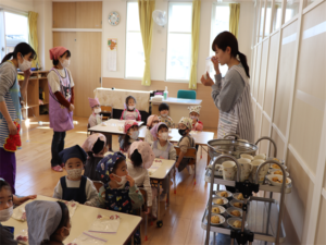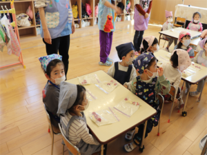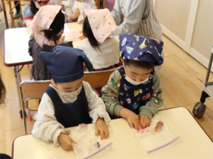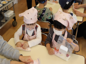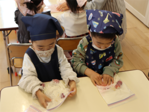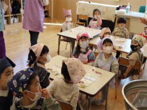 最初に給食の先生にやり方を教えてもらってから作りました✨