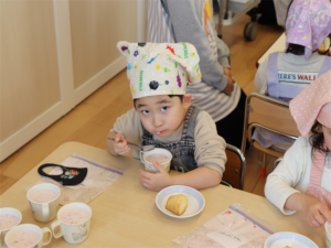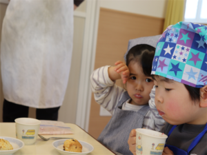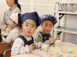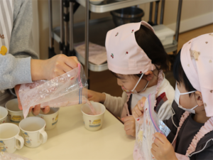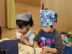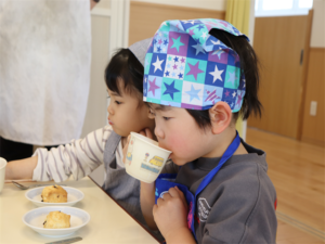 うんうん、おいしい~といつも以上に自分の作ったミックスジュースを味わう子供たちです🎵