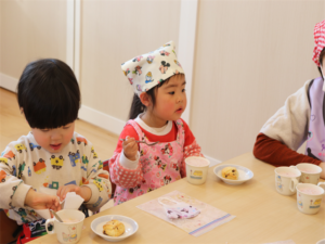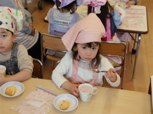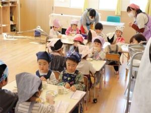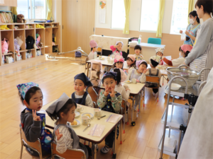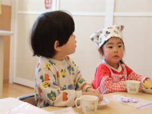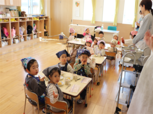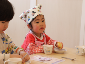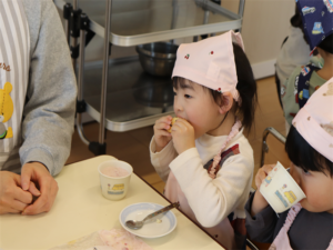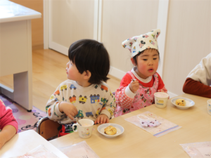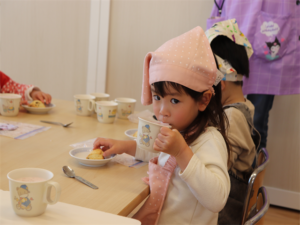 みんなで作ったミックスジュース、とってもおいしそうに飲んでいたうさぎ組さんです✨