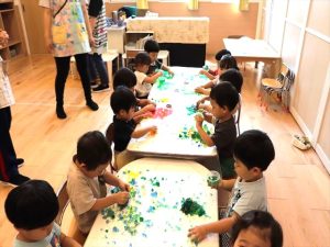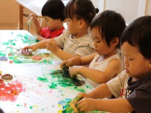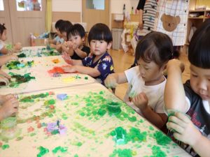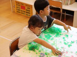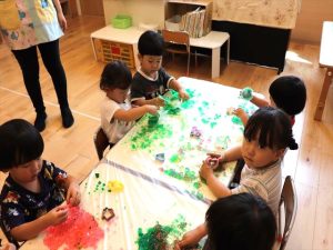 広げてみて「きれい~」と眺める子もいたり、子どもたちの感性はとっても豊かです。