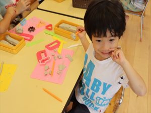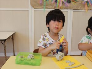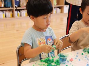 切ったり混ぜたり、感触を楽しみながらいろんな形を作っていきます。